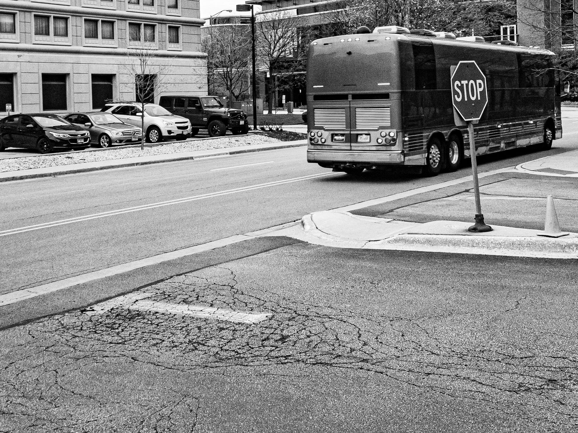 When we walk out to play I am disconcerted that there are people at tables on three sides of the stage, something which always bothers me. (How can they see anything? It always makes me makes me feel as if I am in the way!) But the place seems to be full. There is nothing for it but to make like this is a proper rock and roll room and get on with it. Jim rises above his condition and the show turns out to be a worthy end to the tour. By the encores we are on top of our game and have the audience with us. Someone I don’t know gives me a bottle of Woodford Reserve. Beers and tequila shots are ordered up from the bar to the stage to toast a farewell to the continent before the equipment is whisked away back to the rental company and we board the bus for the overnight drive to the airport. I don’t really know what to feel, and it’s pretty obvious no one else does either. As the last few hundred miles to O’Hare International count down, arriving in Hollywood starts to seem like a lifetime ago. Justin is sitting up front drinking beer deep in conversation with Gary our bus driver. People drift to their bunks. Even without the norovirus casualties this was never going to be a night for partying. I crawl into my bunk and force myself to sleep. Six hours later I am standing with my suitcase on a sidewalk in front of a grim airport hotel watching the bus leave with a sense of panic in my heart wondering when I can do this all over again.