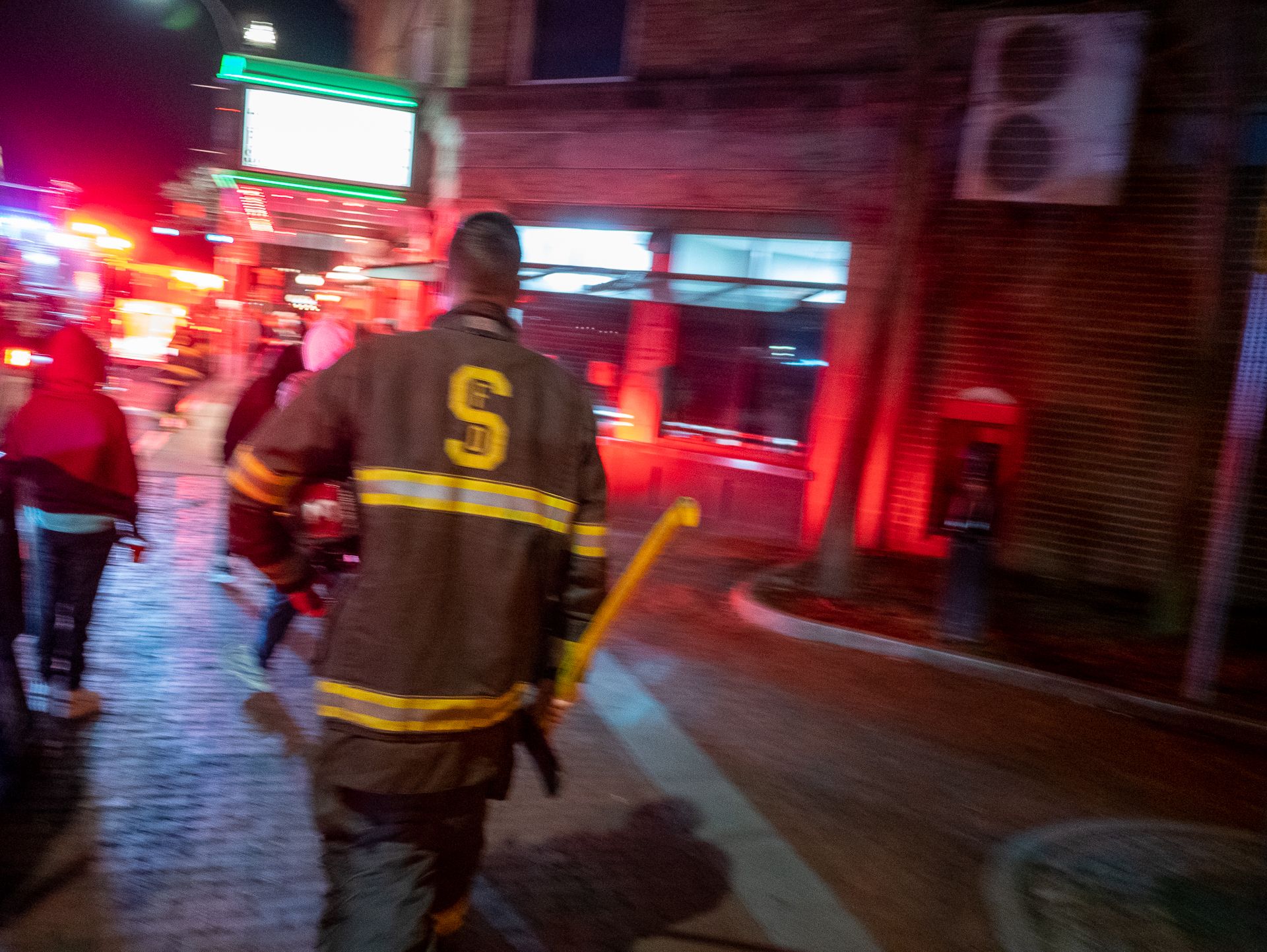 Just after we finish someone sets off the fire alarm. Justin is taking a shower in the basement dressing rooms and pays no attention while the Somerville Fire Department arrive with sirens blaring and troop into the building. The point man is carrying a huge axe but thankfully the false alarm is identified before he decides to descend into the basement to release him.